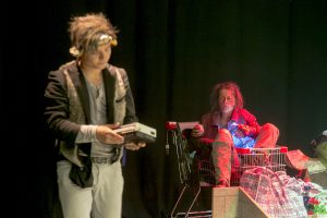 Urauffuehrung ueber eine Obdachlose und einen Zauberer: Grips Theater im Podewil: Aus die Maus, 22. September 2016. Regie: Nadja Sieger (von uA Ursus & Nadeschkin).